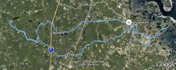 Bedford has a "one book, one Bedford" program, and this year the book was "The Orchard" by Adele Crockett Robertson. This is a memoir of Adele's attempts to save the family house and orchard during the depression. We both enjoyed the book and decided to see the house. Ben mapped out a route from Stiles Pond in Boxford. While the route looked like 33 miles on Google maps, it ended up being nearly 40. But the weather was beautiful most of the way (we had threatening skies, but no rain, for the last hour or so), and we had a nice fish & rings lunch in Ipswich. And, of course, we saw the house.