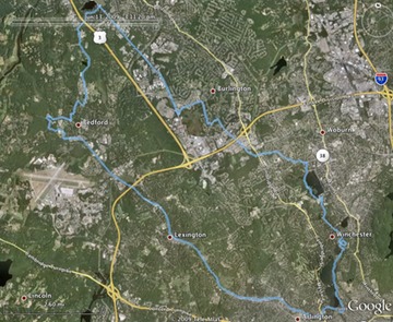 Another fine weekend day in Boston (surrounded by rainy days). Kathy and Ben did a 30 mile ride down the bike path through Lexington and Arlington, looping around Mystic Lakes, then up through Winchester and Woburn past Horn Pond. Through Burlington and up the Middlesex Turnpike to Nutting Lake in Billerica, then back home, stopping for iced tea at Téa's Tea on Great Road in Bedford. A pleasant ending to a beautiful ride.